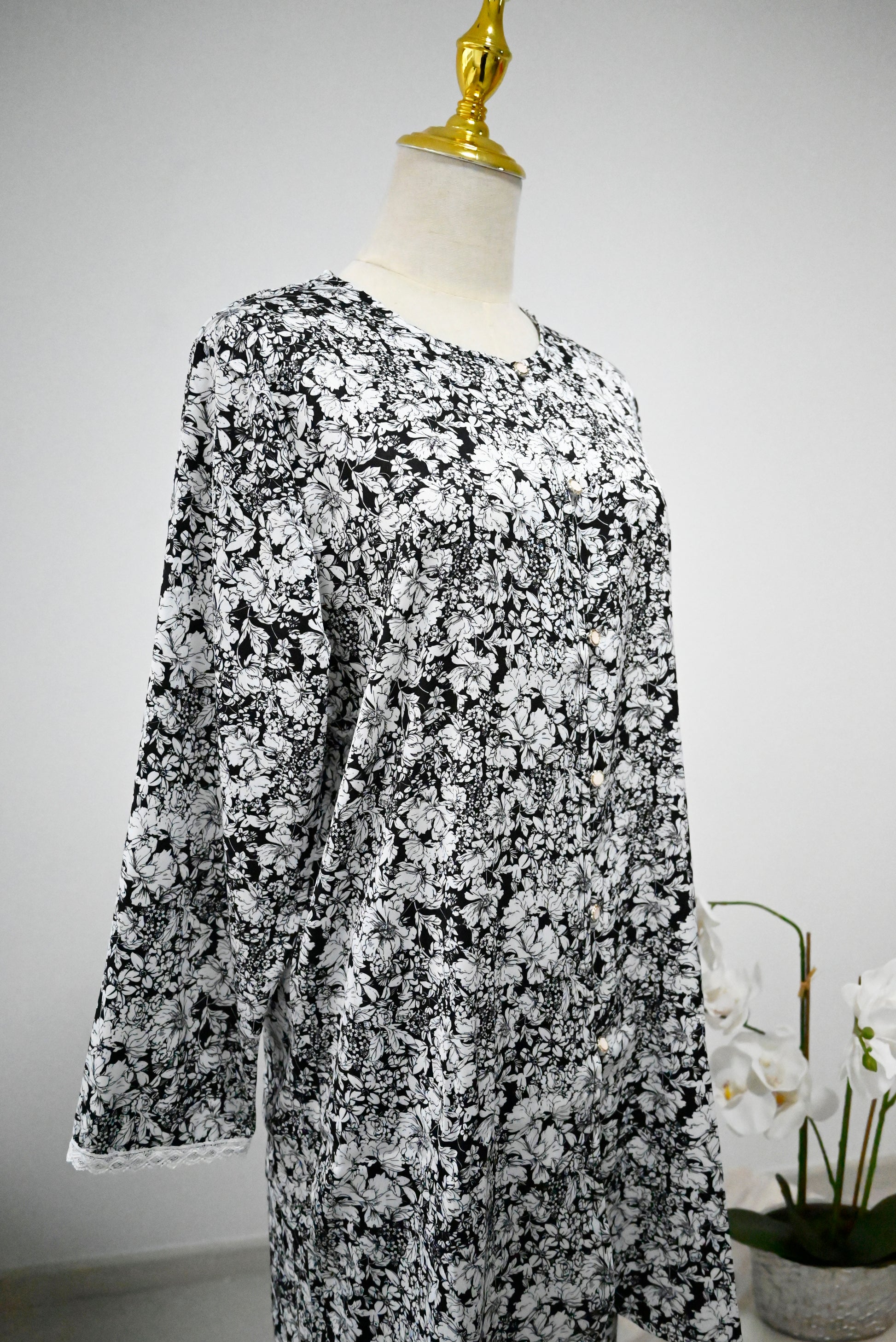 Modern Baju Kurung with lace sleeve & full button top. With pleated skirt.