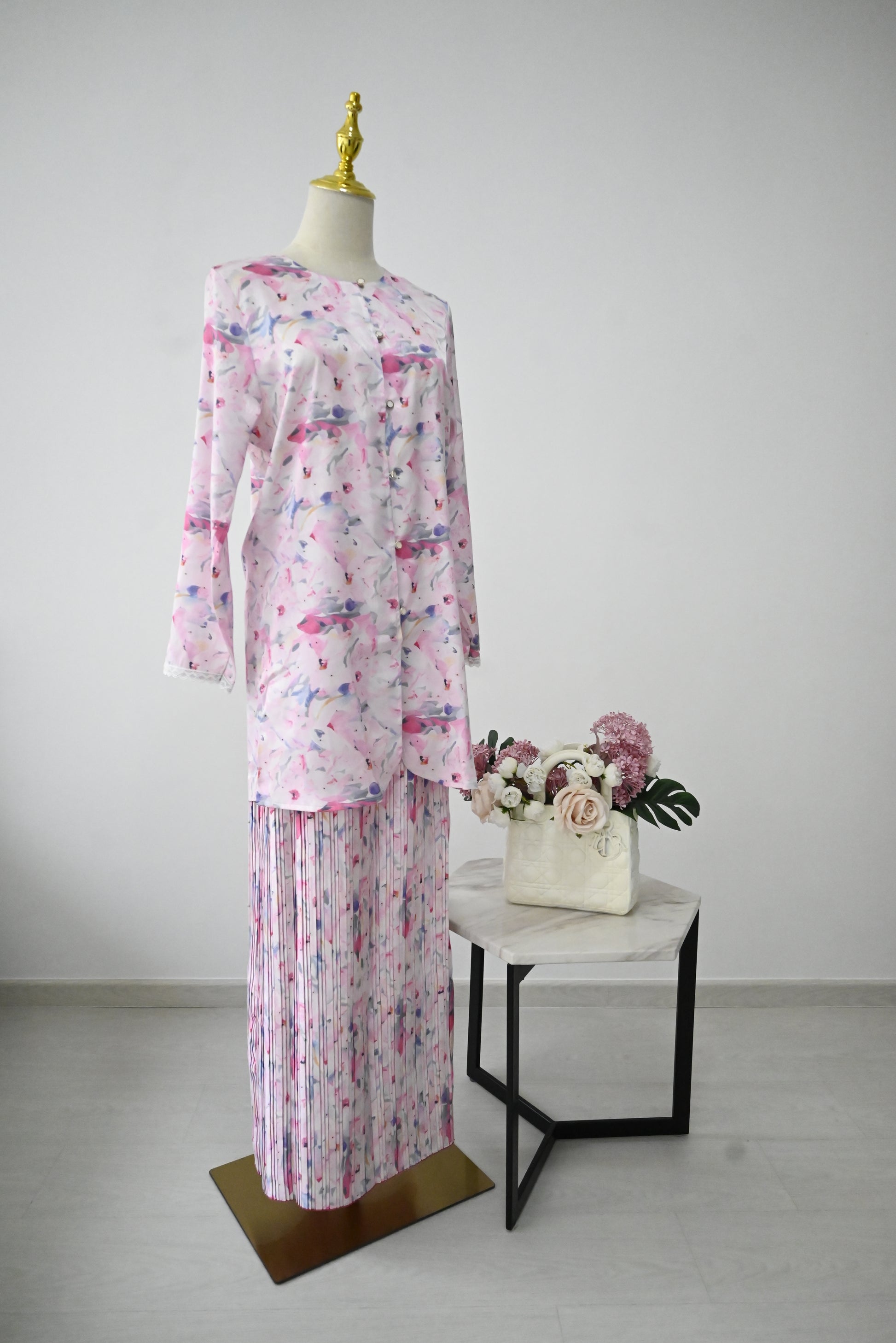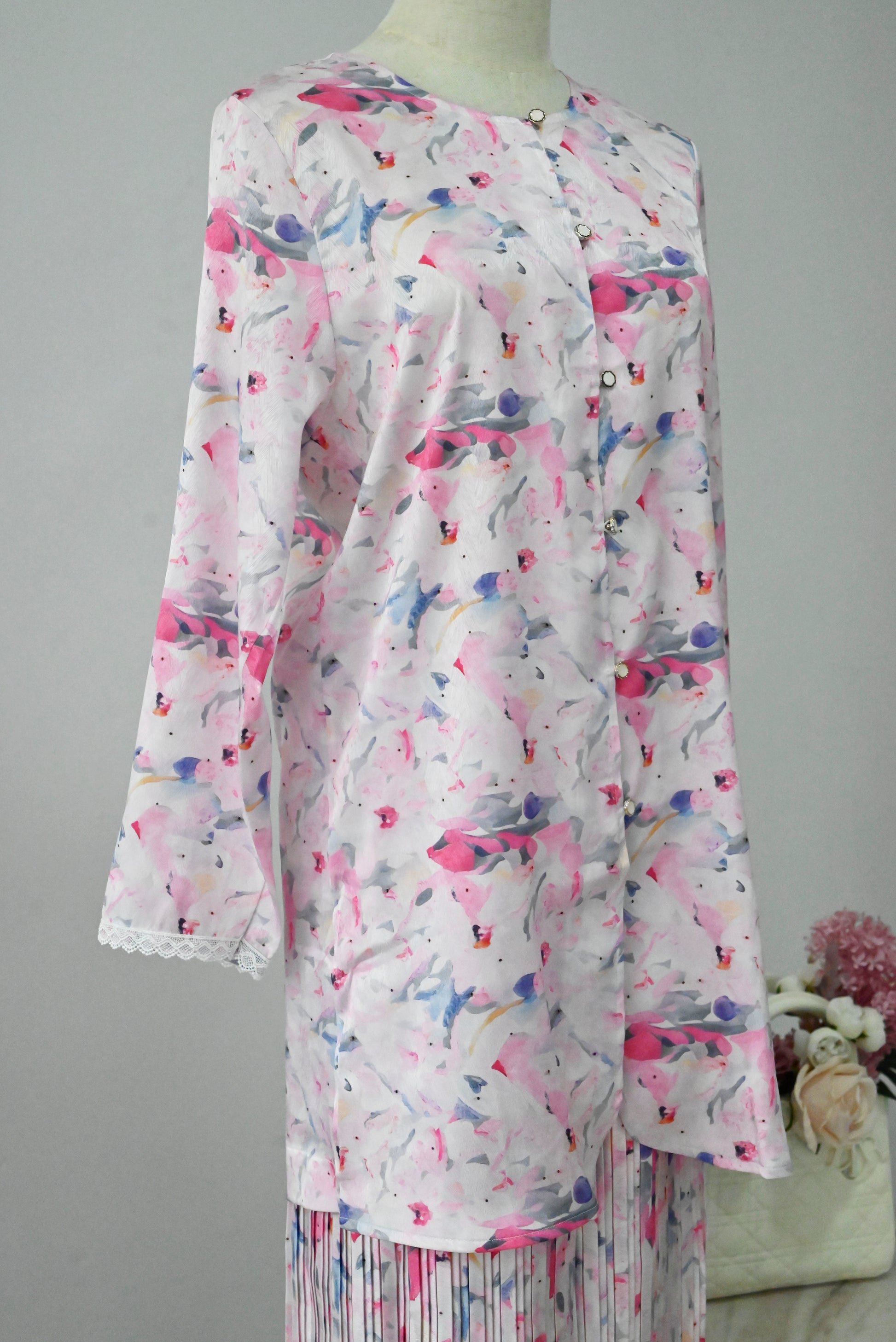 Modern Baju Kurung with lace sleeve & full button top. With pleated skirt.