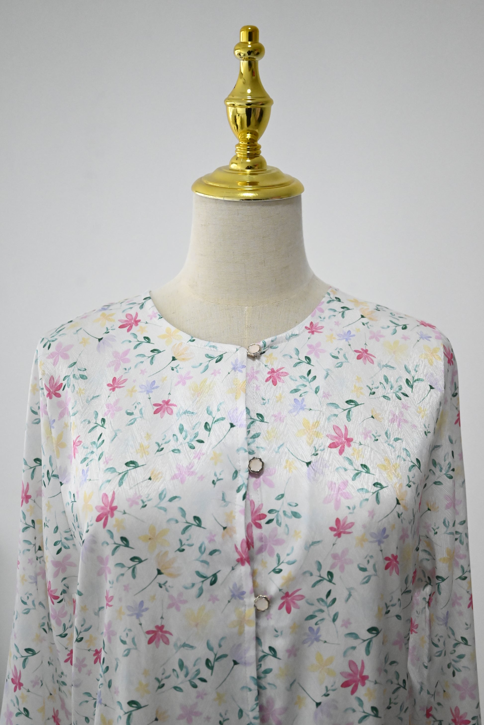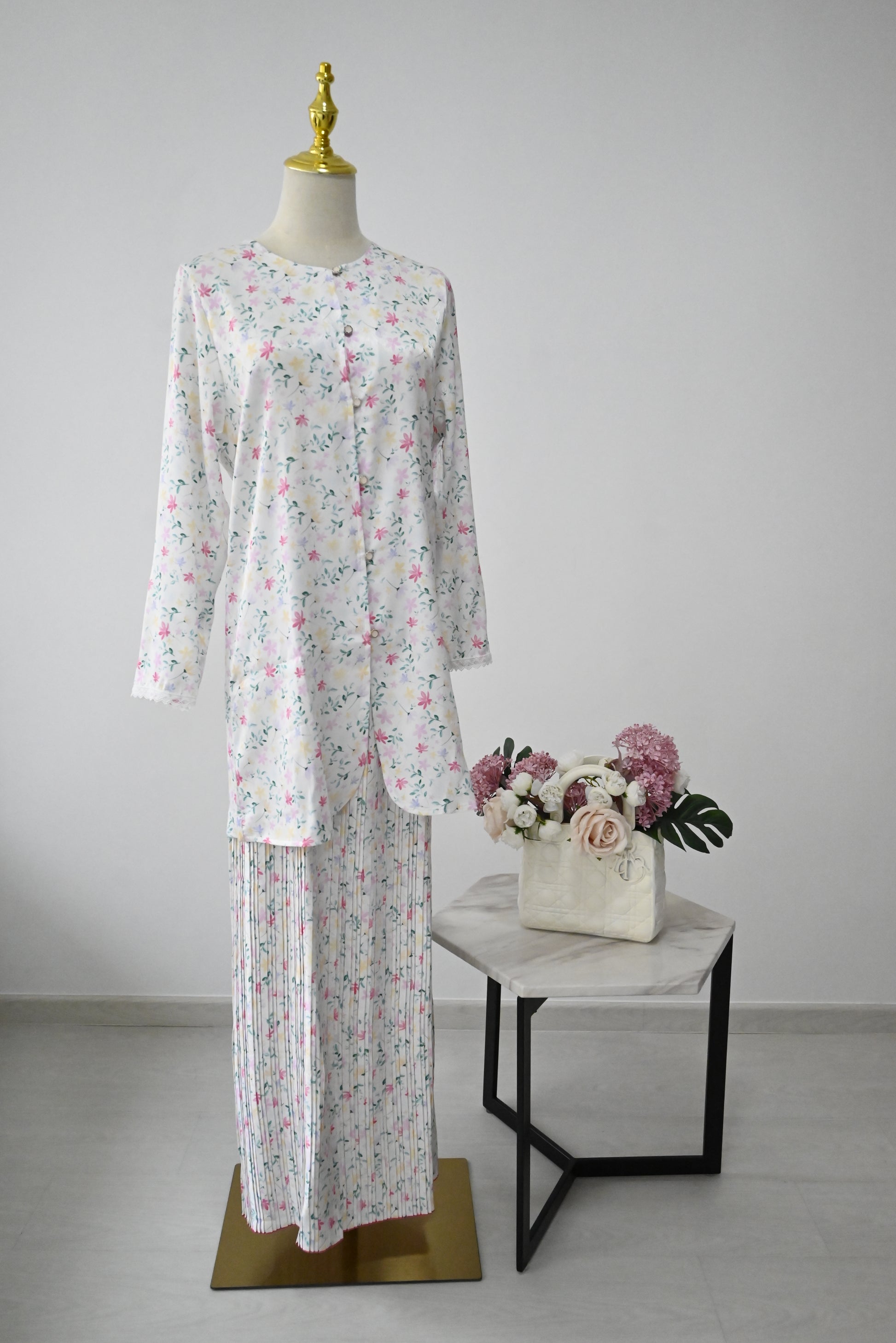 Modern Baju Kurung with lace sleeve & full button top. With pleated skirt.